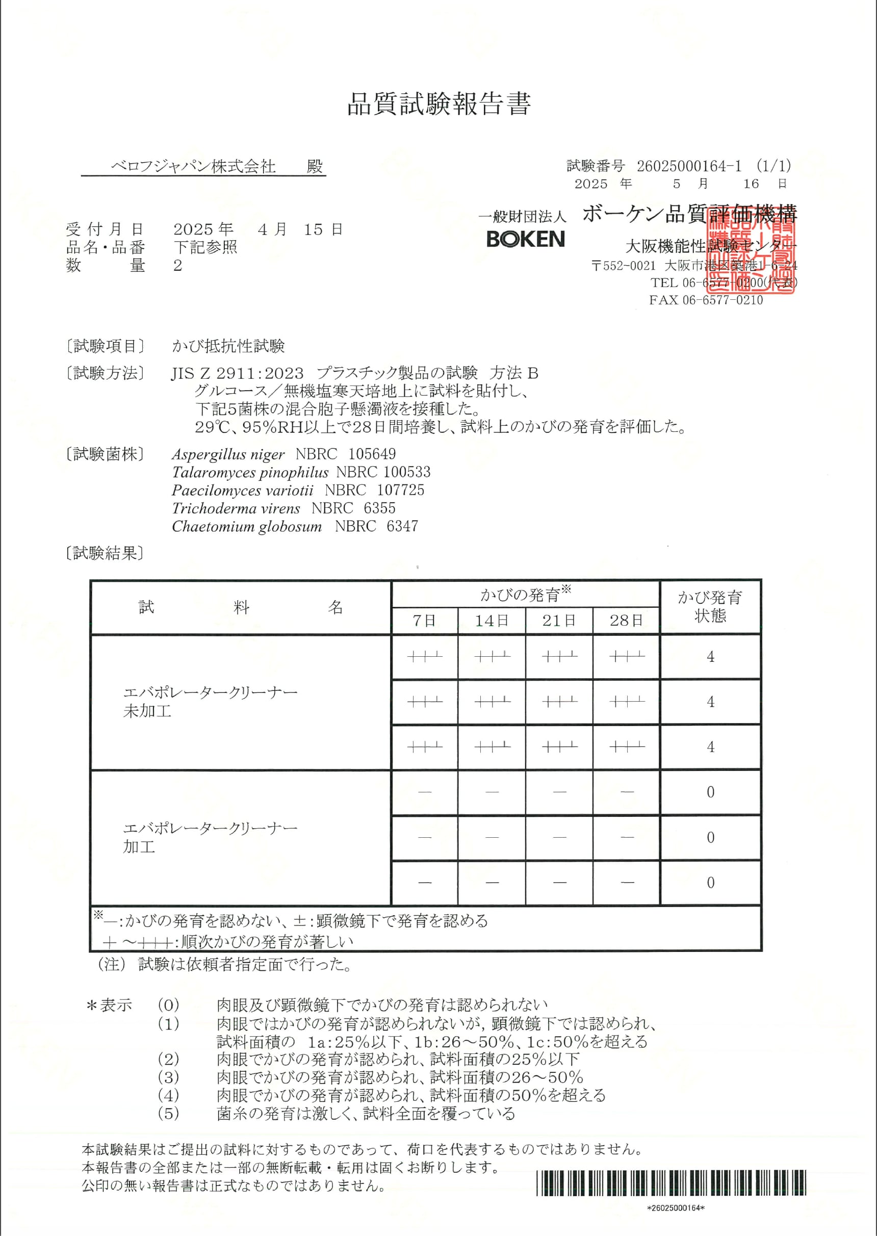 エアコンフィルターでは捕集できない、結露環境下で発生するカビや細菌に対し、ナノレベルまで微細化したメトキシシランを主成分とする高機能コーティング技術を用いた抗菌成分を採用しています。この抗菌成分が、エアコン内部の樹脂部品や金属部品の表面に強固に化学結合し、高い密着性と耐久性を実現します。これにより、結露を起点とするカビや雑菌の発生を抑制し、不快なカビ臭の原因を根本から遮断します。高い抗菌性能は長期間にわたり安定して持続し、エアコン内部を清潔な状態に保ち続けます。